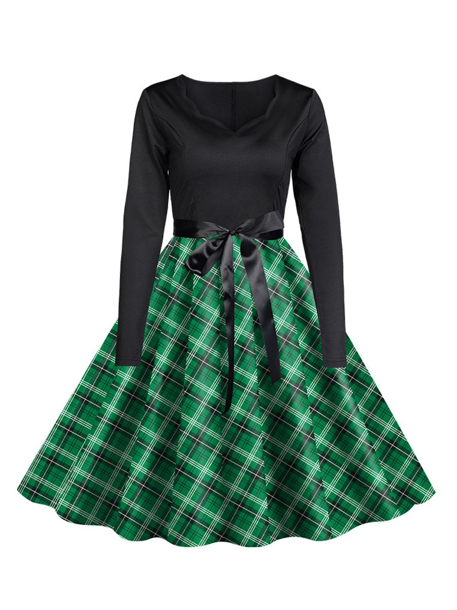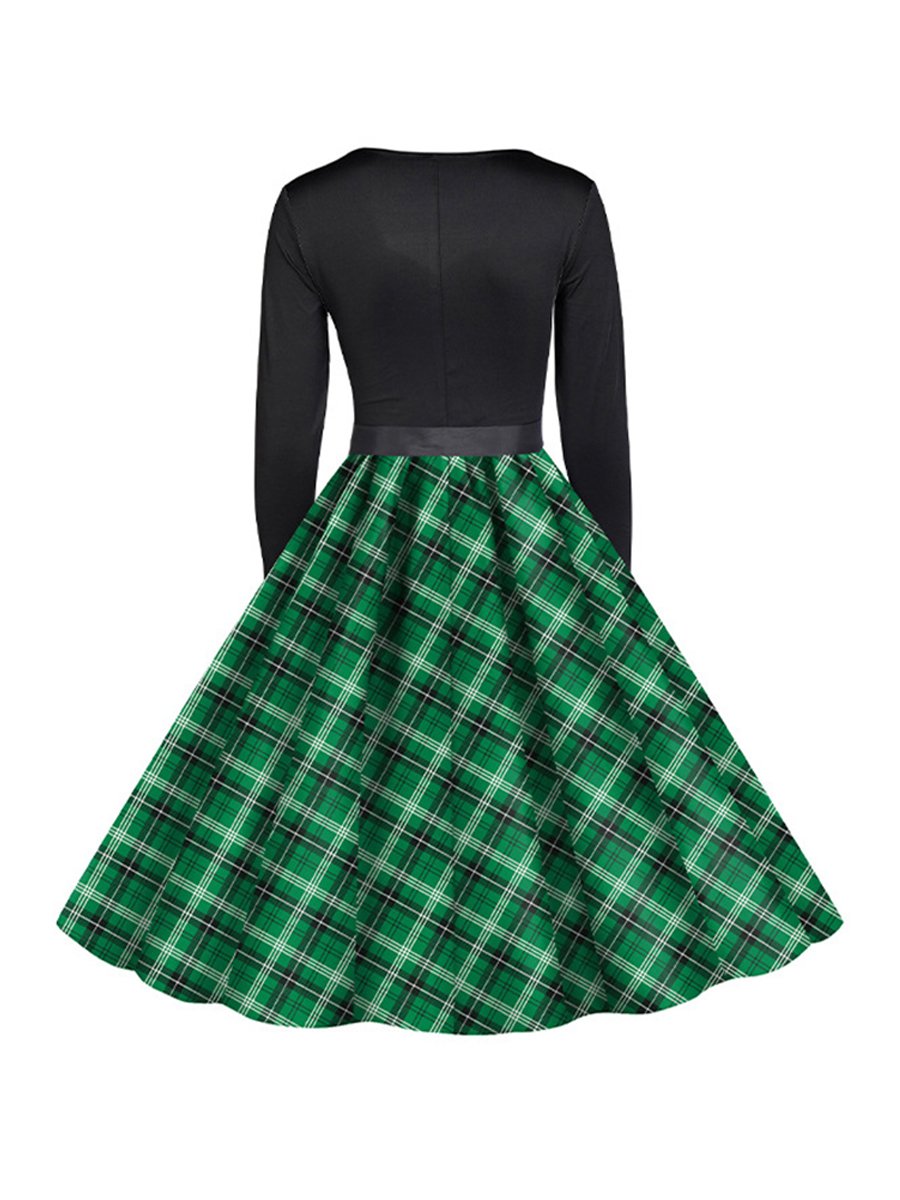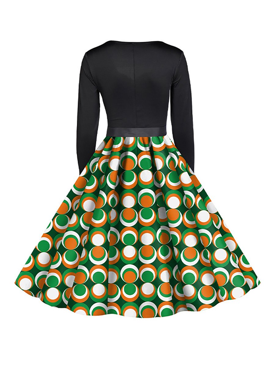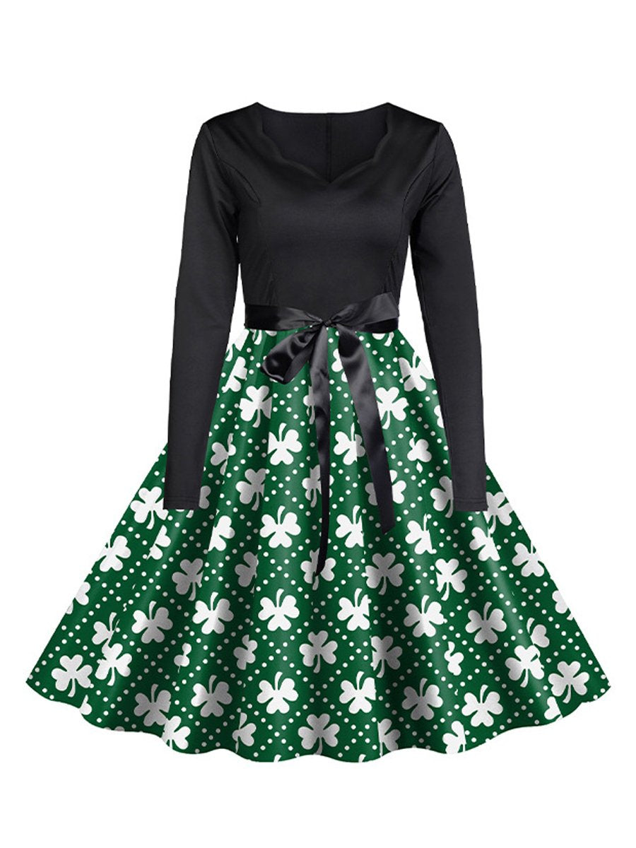 Design: Saint Patrick's Day costume?features a black and green midi dress, long sleeves, back zipper up closure, and three-leaved plant?print, this is a cute and sexy costume designed to make you look more charming.