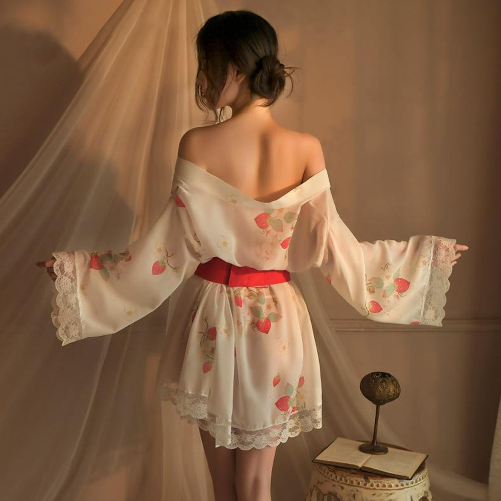 AROSELOVE Japanese Kimono Robes Strawberry Print Kimono Lingerie Anime Cosplay Costume