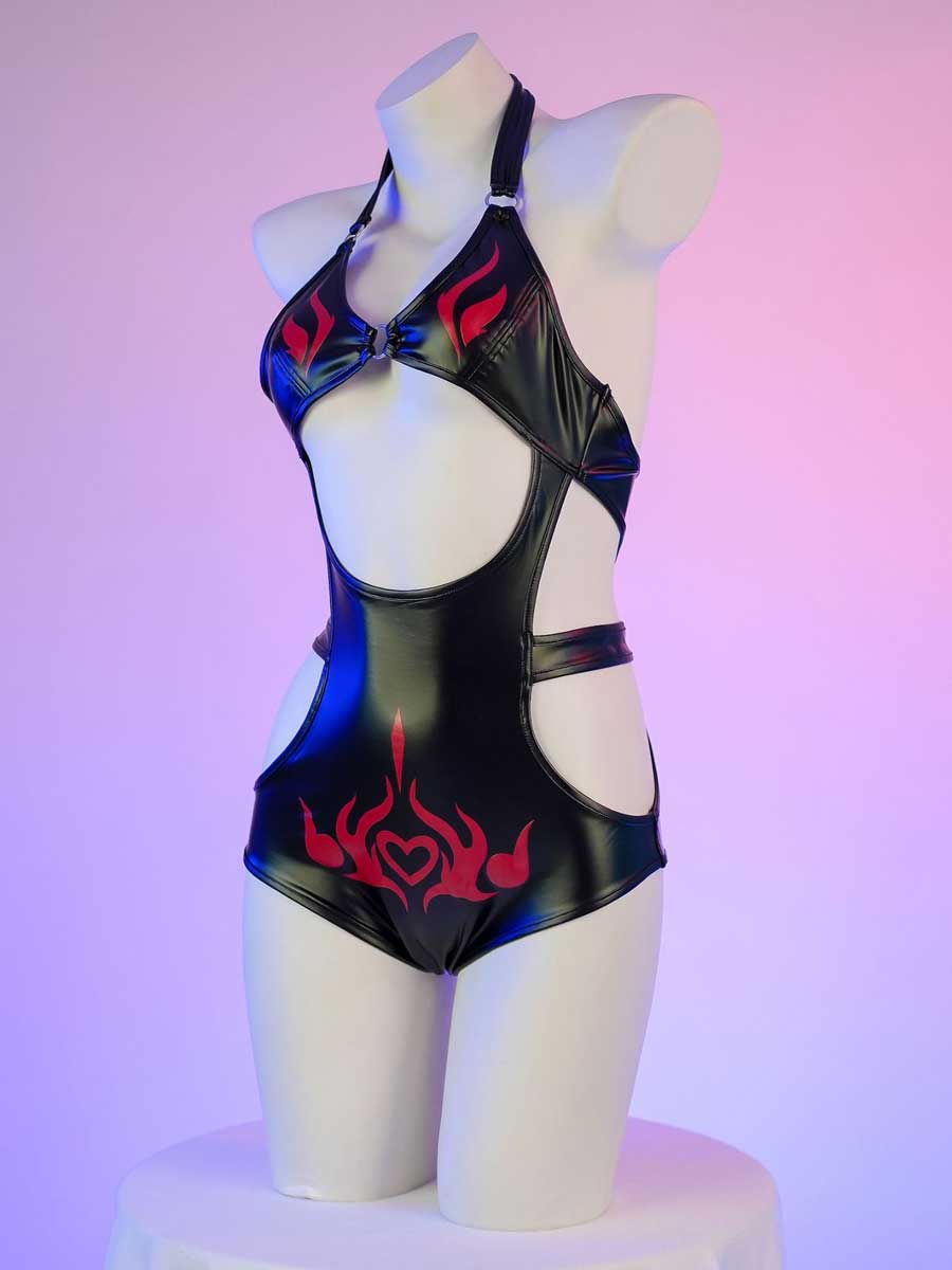 - PU Leather Teddy featuring self-tie halterneck and hollow-out, front cut out detalings, keep your bust stay in place, high cut cheeky g-string and open back, easy to put on and take off.